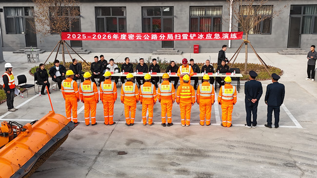2025年10月30日下午,北京市交通委员会密云公路分局在密兴旧路塘子道班至支线四路段,成功组织开展了2025-2026年度日常养护第二标段扫雪铲冰应急演练。此次演练旨在全面提升冬季公路应急保障能力,确保雪天公路交通安全畅通。