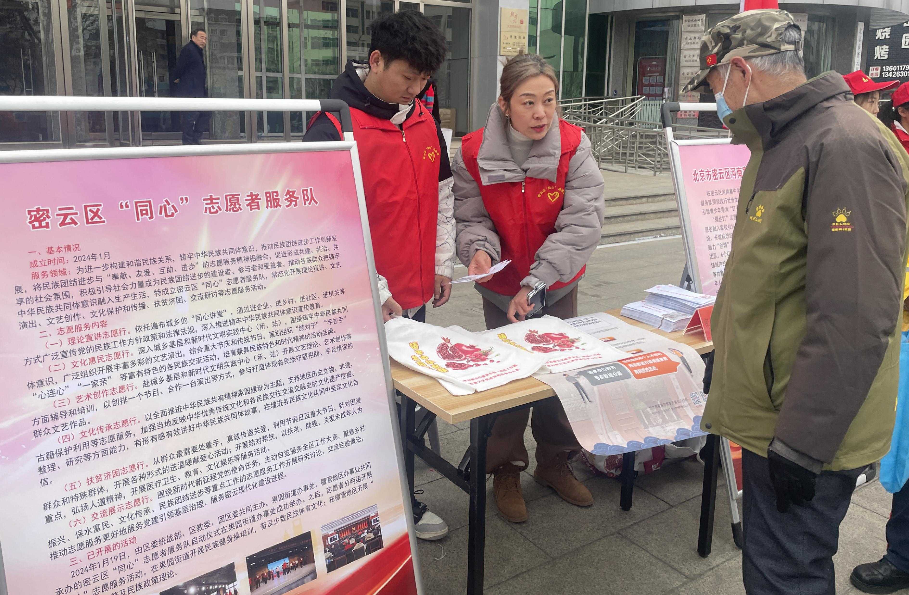 密云区同心志愿者服务队走进社区、公园、文化广场等场所,向社会各界发放民族知识手册,开展“法律护航”活动,普及法律知识,持续巩固平等团结互助和谐的民族关系。