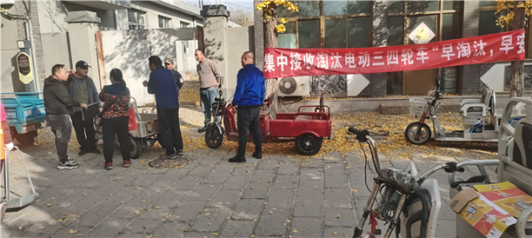 强化党建引领,动员多方主体参与推动清理工作。走进辖区学校,号召学生严禁乘坐无牌、无证或不具备接送要求的车辆,积极带动家长加入到违规电动三、四轮车整治行动中来。组织回收企业开展现场回收活动,对于年龄大、腿脚不便的车主还提供“点对点”上门回收。