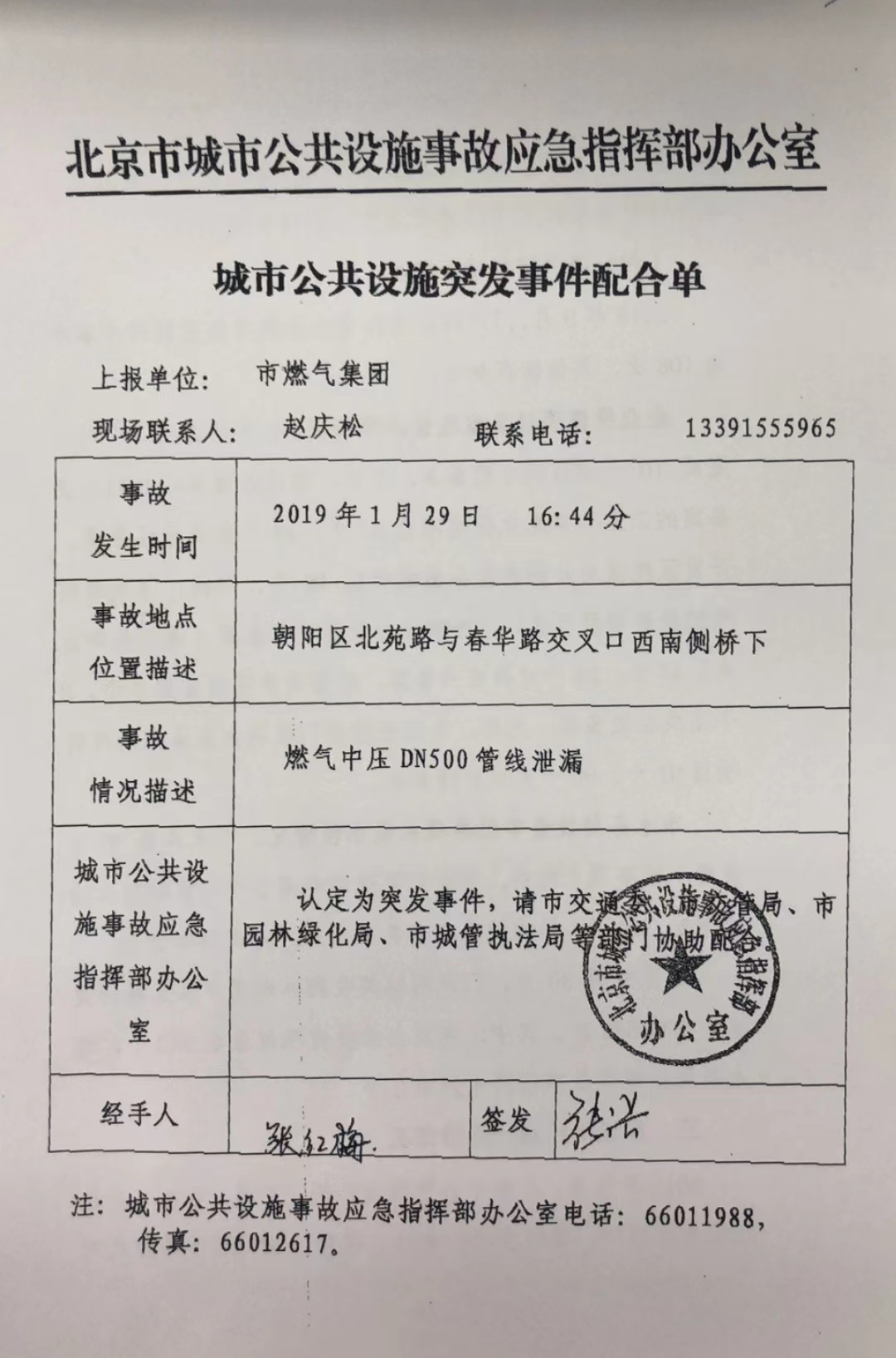 2)或城市公共设施突发事件配合单:政府部门核发,复印件1份、纸质、电子 样例