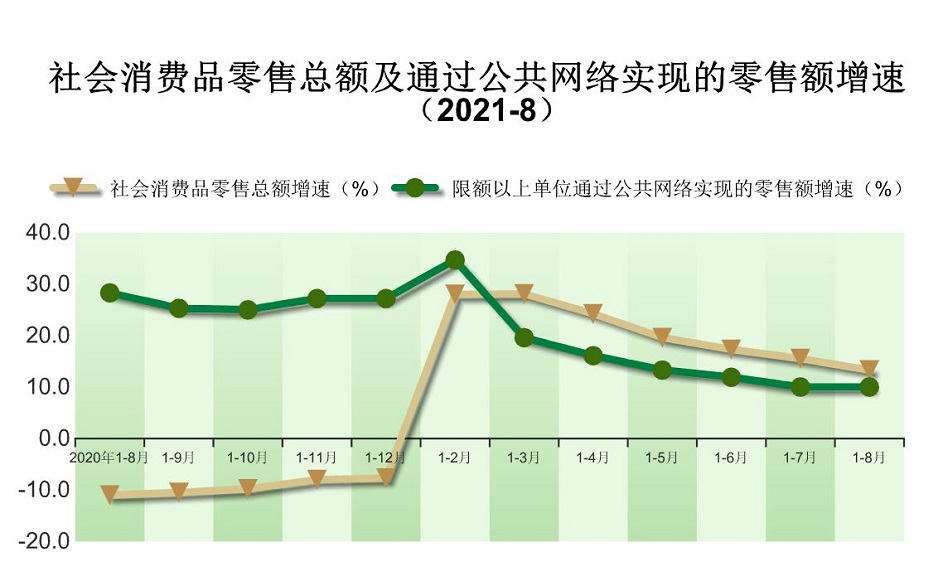 2021年1-8月,密云区实现社会消费品零售总额110.4亿元,同比增长13.3%。从网络消费情况看,2021年1-8月限额以上商业单位通过公共网络实现零售额37.5亿元,同比增长10.0%。