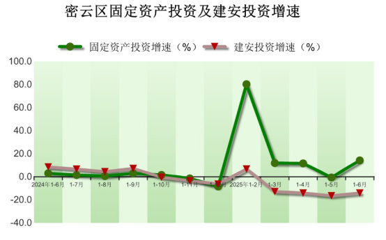 2025年1-9月,密云区固定资产投资(不含农户)同比增长24.8%,其中,建安投资同比下降1.3%。