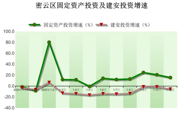 2025年1-11月,密云区固定资产投资(不含农户)同比增长15.6%,其中,建安投资同比下降5.6%。