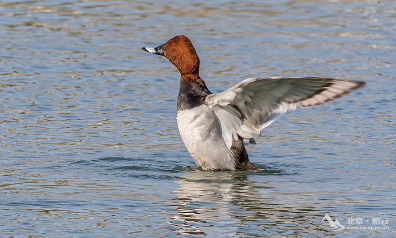 中等体型(46厘米)的潜水鸭。栗红色的头部与亮灰色的嘴、黑色的胸部及背部形成鲜明对比。腰黑色但背及两胁显灰色。近看为白色带黑色蠕虫状细纹。雌鸟背灰色,头、胸及尾近褐色,眼周皮黄色。栖于有茂密水生植被的池塘及湖泊,以水藻和水生植物为食,也吃小型水生无脊椎动物。见于全国各省份,在密云为常见旅鸟。