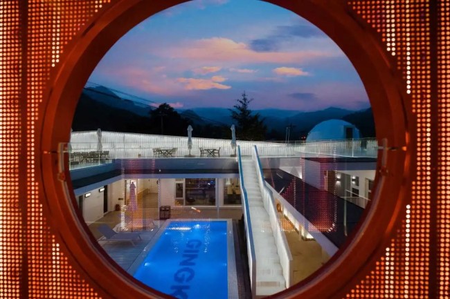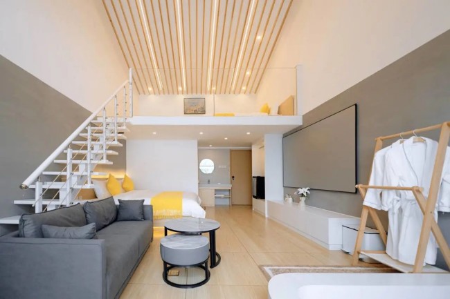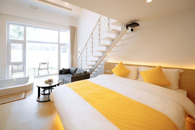 这里以象征爱情的古老银杏树和“鹊桥”为特色,提供独特的爱情主题住宿体验。