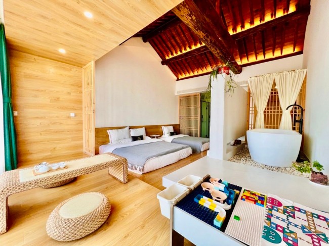 伴着阵阵虫鸣,民宿五一期间还推出限量下午茶、免费插花、人偶互动、萌鸭观赏等系列活动,为游客营造一个舒适惬意的住宿体验。