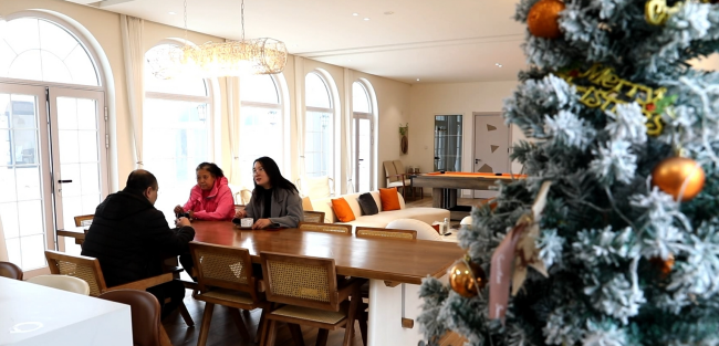 三五好友在民宿图兰山谷的音乐排练室内尽情欢歌笑语,