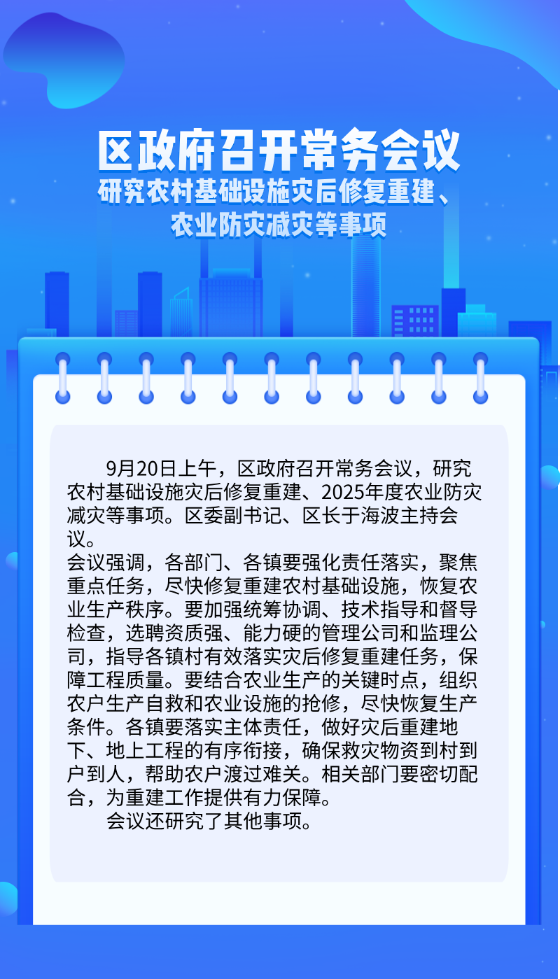 区政府常务会议解读:研究农村基础设施灾后修复重建、 农业防灾减灾等事项