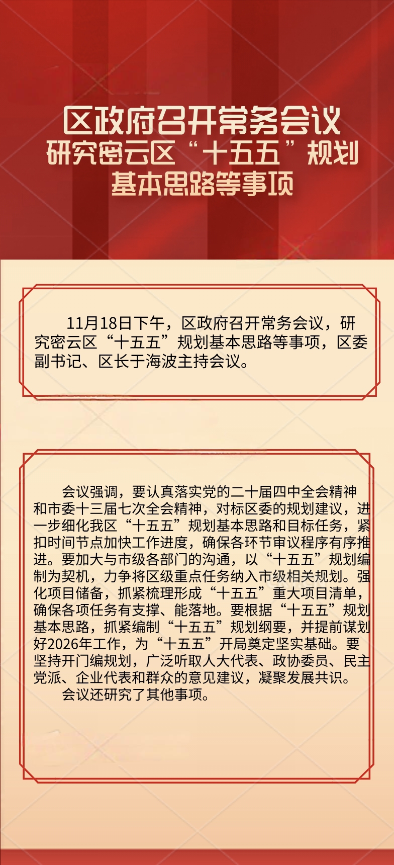 区政府常务会议解读:研究密云区“十五五”规划基本思路等事项