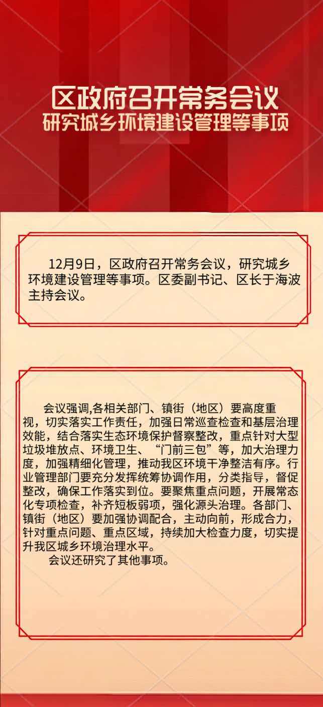 区政府常务会议解读:研究城乡环境建设管理等事项