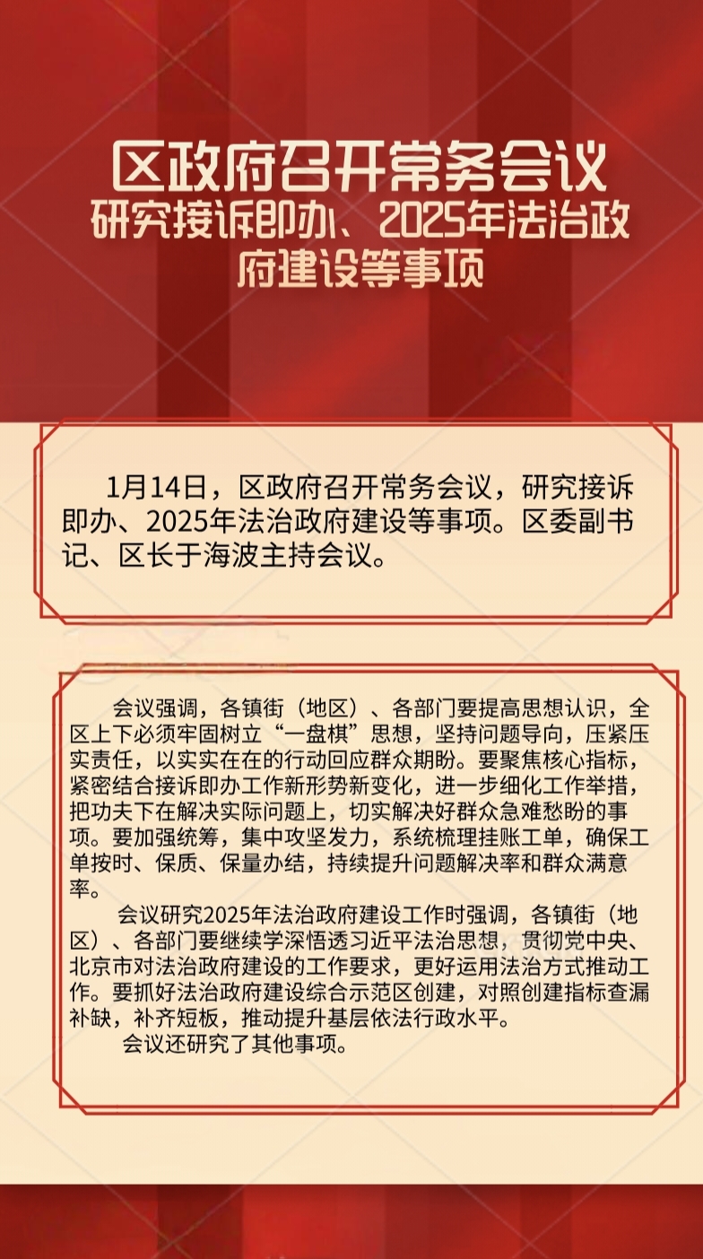 区政府常务会议解读:研究接诉即办、2025年法治政府建设 等事项